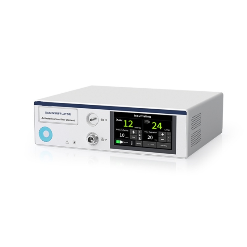 The device supports flow rate adjustment of 3/5/10/20/30L/min, with abdominal pressure controllable within 2 – 15mmHg and an overpressure alarm for the abdominal cavity.