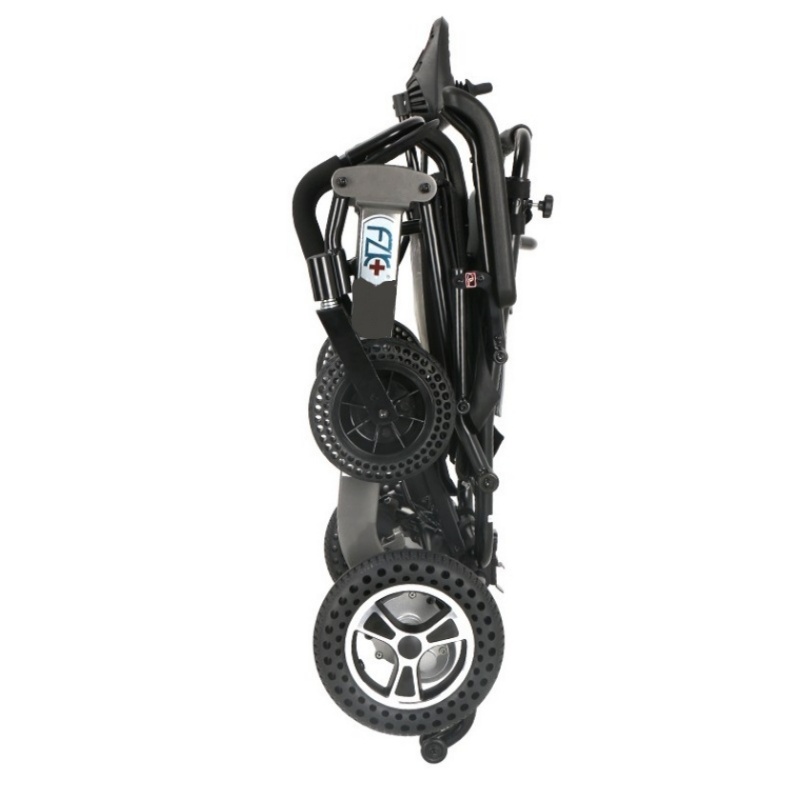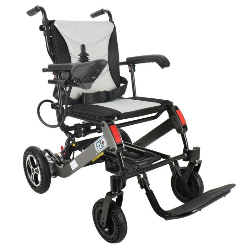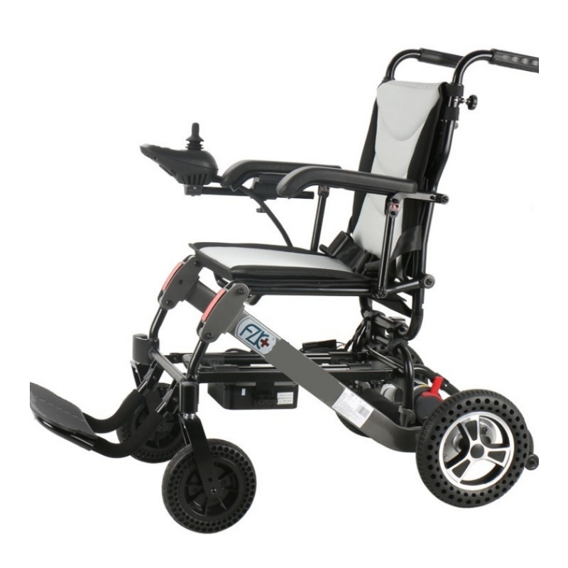 This aluminum – alloy electric wheelchair (FZK – 1205) combines smart folding, 360° joystick control, and dual – motor power.
