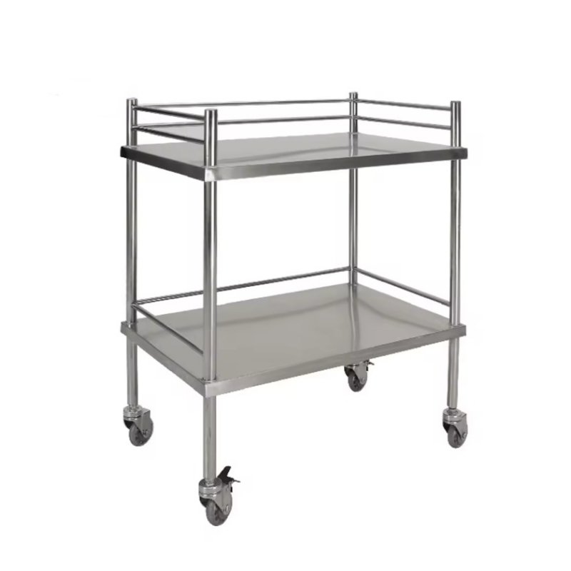 The stainless steel dressing trolley is made of SS304 stainless steel, with dimensions of 670×450×900mm.