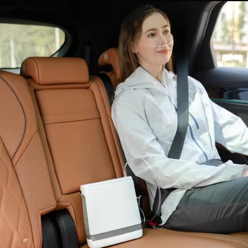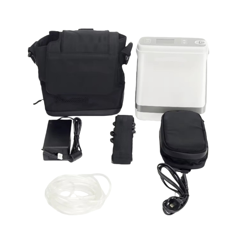 Pulse dose concentrator: 1L continuous/1-5L pulse flow, 93%±3% purity. 8/12-cell battery (12-cell up to 7h). Light (1.98kg), compact size. Easy-to-use, with shoulder bag.