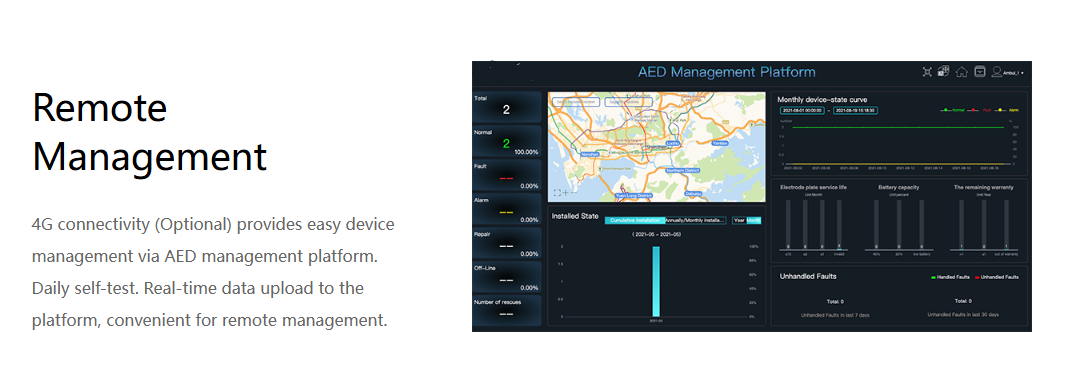 4G Connectivity (Optional): Enables seamless device management via the AED management platform for remote oversight.