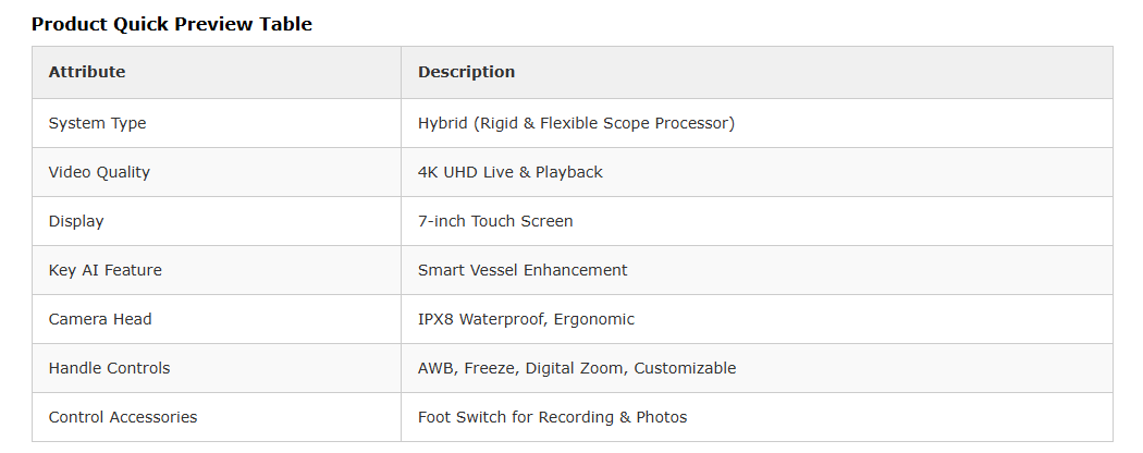• Hybrid system: Supports both rigid & flexible endoscopes (cost-effective, no separate systems needed)