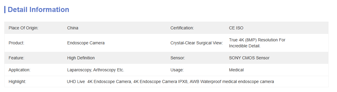 LN-C703LH 4K Endoscope Camera | Technical Data & Specifications