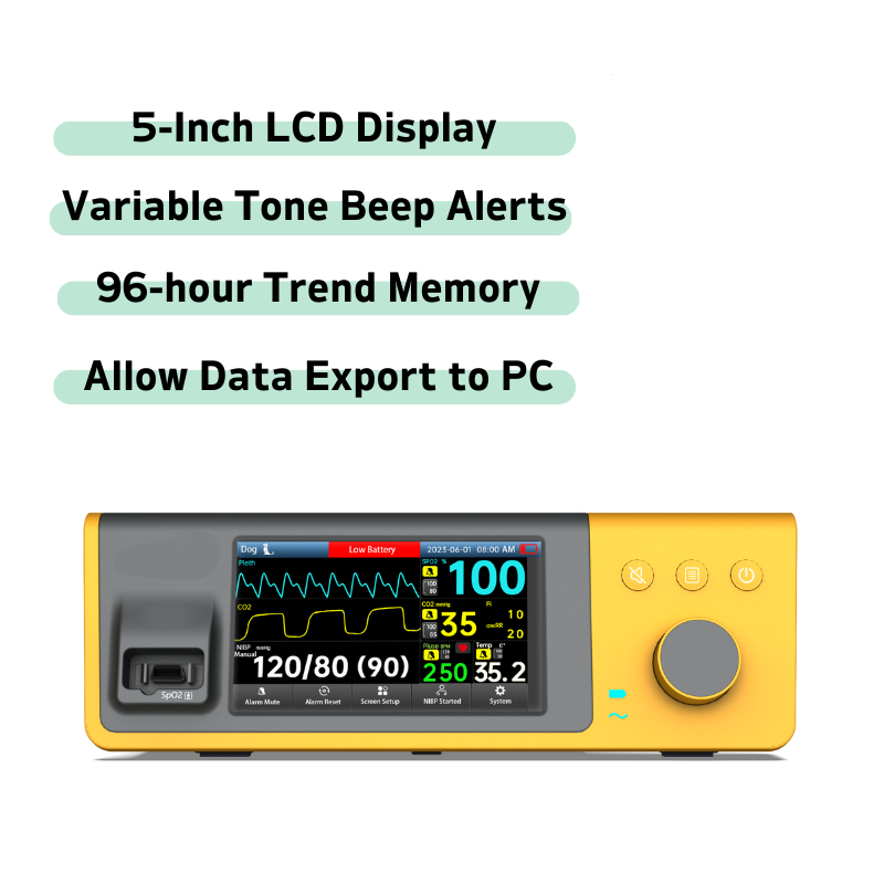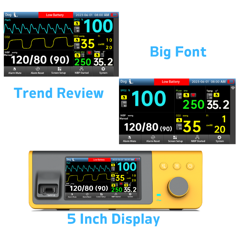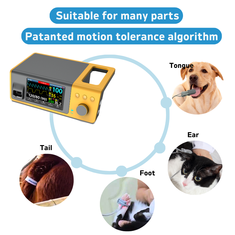 • The BTO – 300A/VET Veterinary Bedside SpO2 Monitoring System integrates SpO2, NIBP, TEMP, and CO2 monitoring. With real- time tracking, multi-parameter display.